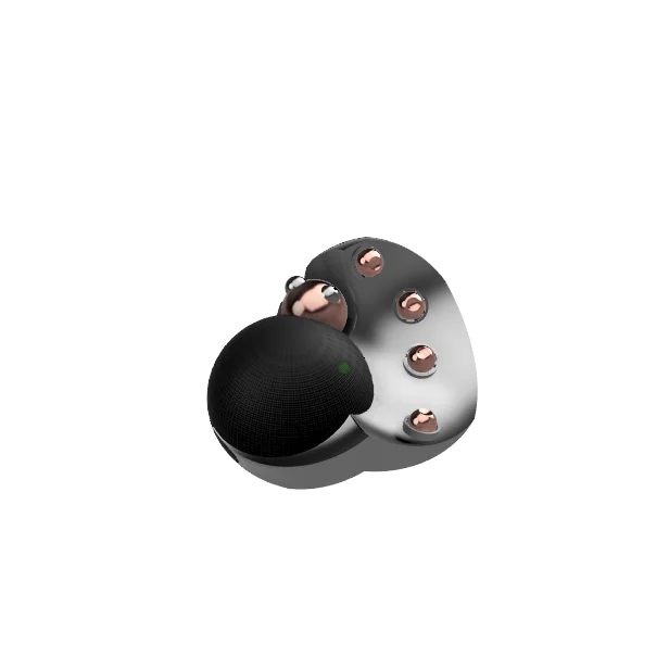 TMR sensors detect ball tilt. Magnetic click, spring return. No contact, no wear. 1000Hz polling.